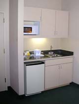 to. Suite had no living room or kitchen, but one of the bedrooms had a wet bar area with mini refrigerator and microwave.